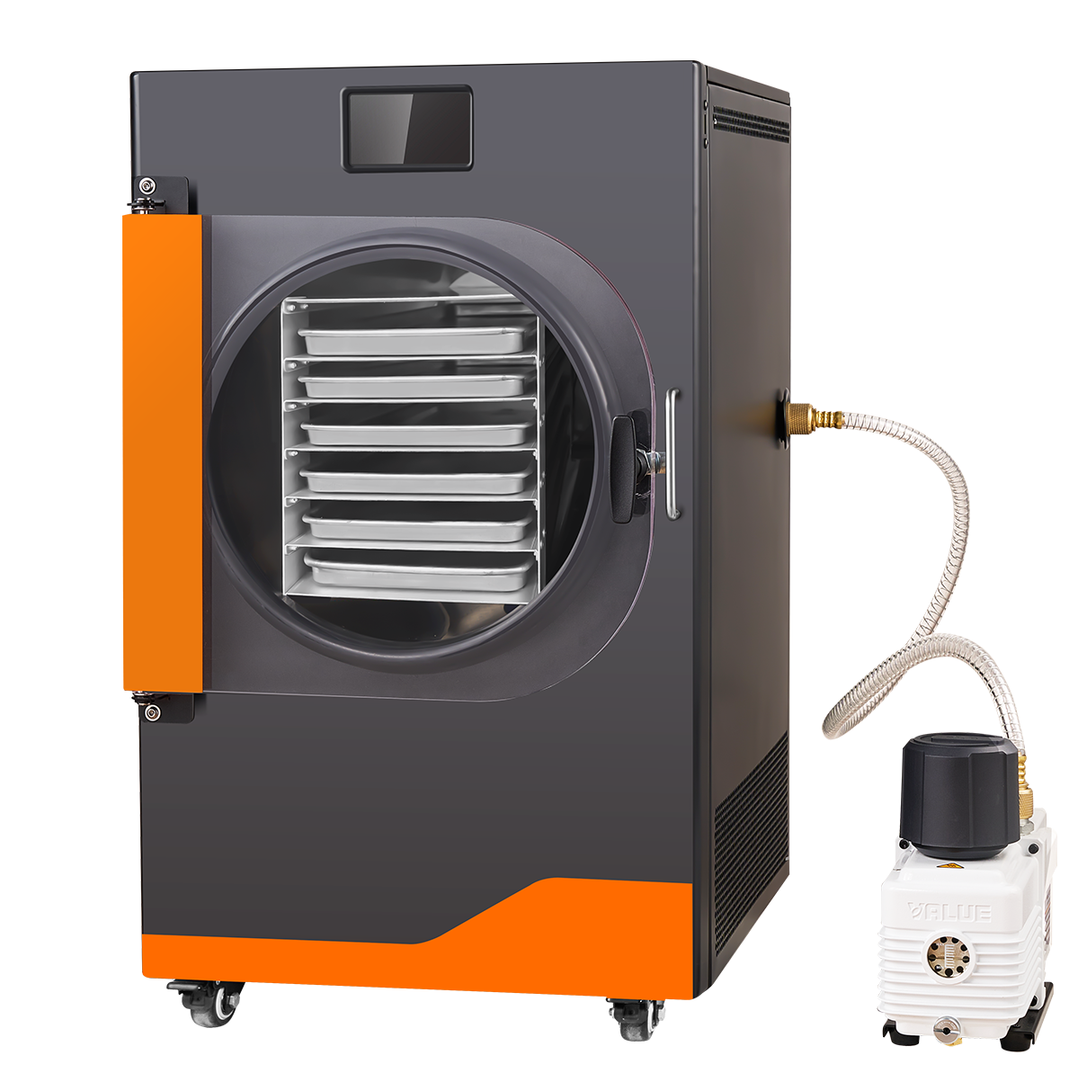 Dondurarak kurutma makinesi, düşük sıcaklık vakum koşulları altında malzeme içindeki nemin doğrudan katı halden su buharına dönüştüğü süblimleşme prensibine göre çalışır. Bu buhar daha sonra bir vakum pompası grubu tarafından uzaklaştırılır ve kurutma amacına etkili bir şekilde ulaşılır.