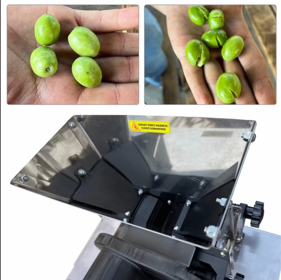 Ayrıca, ayarlanabilir kırma seviyesi sayesinde zeytinleri istediğiniz ölçüde kırabilir, damak zevkinize uygun kırma zeytinler hazırlayabilirsiniz. Çekirdeklerin zarar görmesini engelleyen özel takoz sistemi sayesinde iri çekirdekli zeytinlerde kırılma, sıkışma sorunu yaşanmaz.